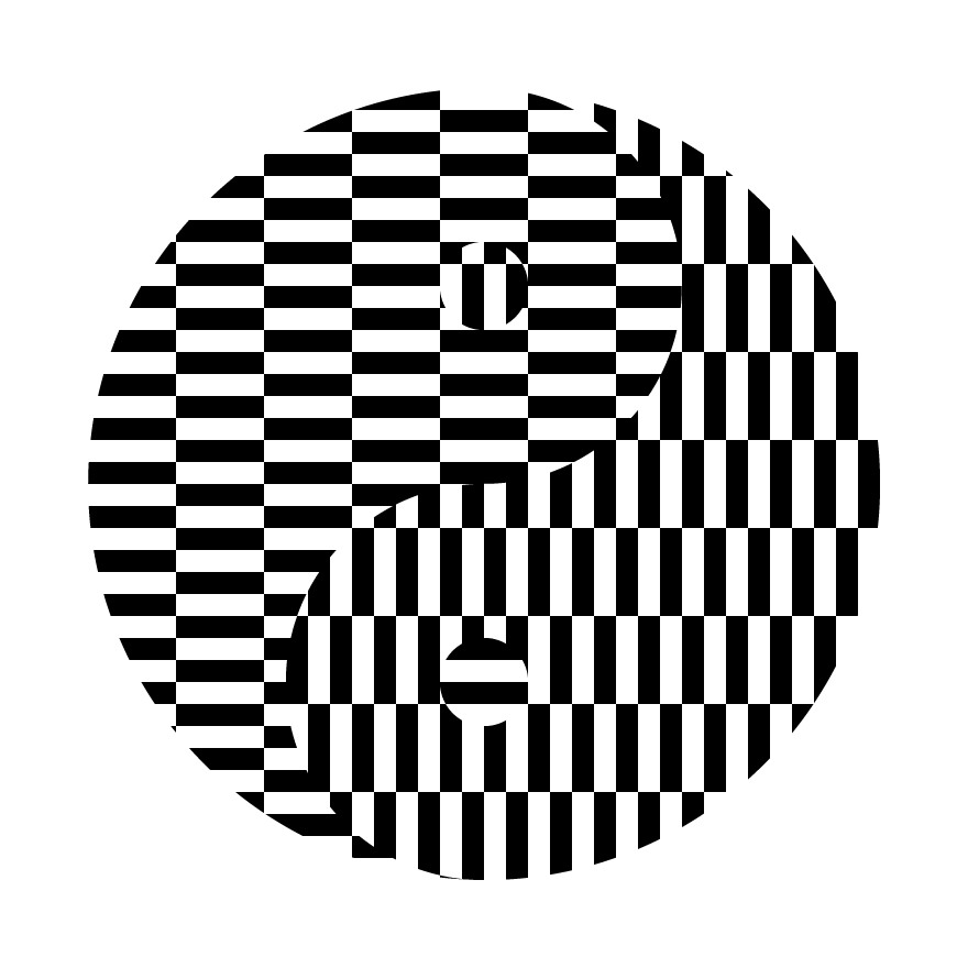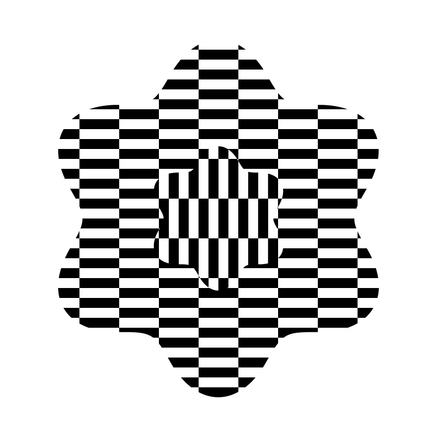 More of: A little bit/an integration of geometry with the Ouchi Motion visual illusion. See also the patterns from the 29.November of 2008.