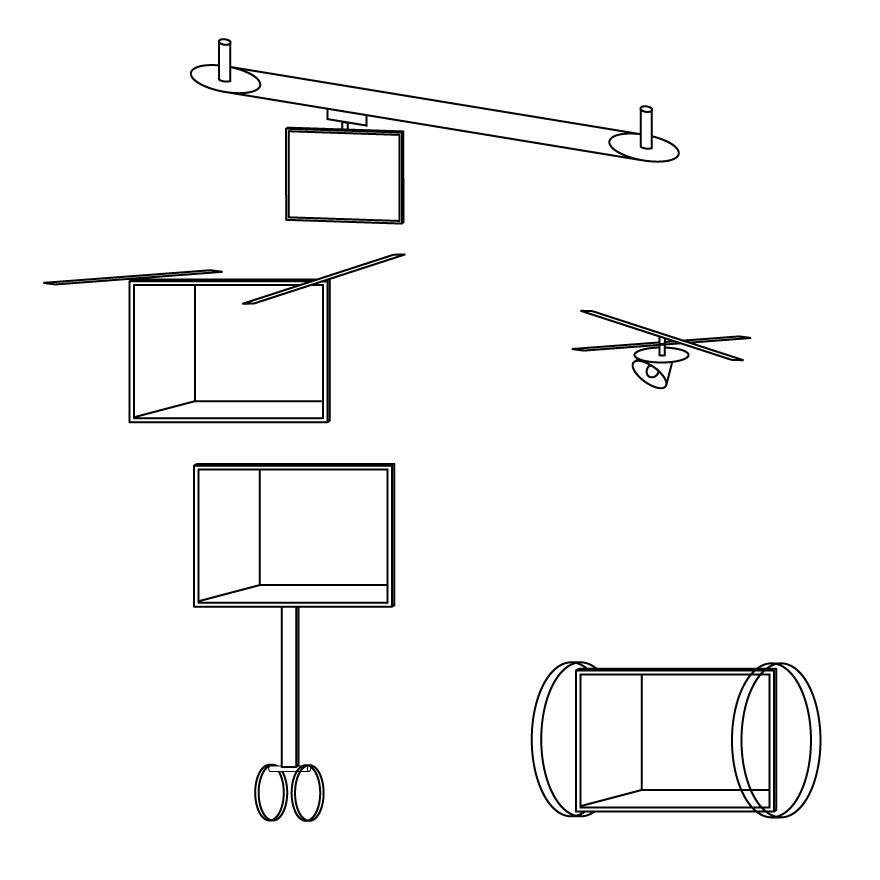 2. row: Displays, and FlyLamp (Roboticle 2008), and Robot-Arm with 3D Display (Roboticle 2008)