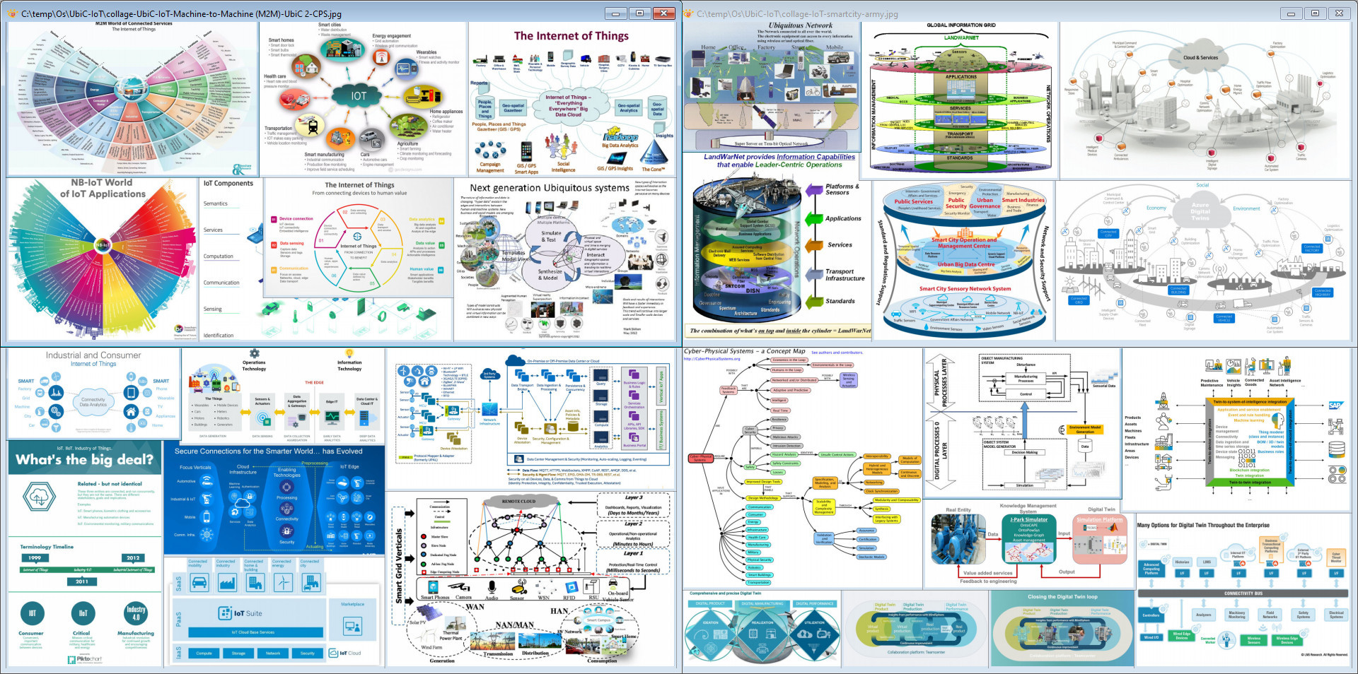 The following is a temporary collage of some of said collages with Cyber-Physical System (CPS), Internet of Things of the first generation (IoT 1.0), Ubiquitous Computing of the first generation (UbiC 1.0), Networked Embedded System of the first generation (NES 1.0), Ambient Intelligence of the first generation (AmI 1.0), Internet of Things of the second generation (IoT 2.0), Ubiquitous Computing of the second generation (UbiC 2.0), Networked Embedded System of the second generation (NES 2.0), Ambient Intelligence of the second generation (AmI 2.0), etc. respectively Ontologic Net of Things (ONoT), Model-Based Autonomous System (MBAS) or Immobile Robotic System (ImRS or Immobot), Digital Twin, Ontologic holon (Onton), Industry of the fourth generation (Industry 4.0 or I 4.0), Industry of the fifth generation (Industry 5.0 or I 5.0), Industry of the sixth generation (Industry 6.0 or I 6.0), Industrial Internet of Things (IIoT), Universal Space and formerly Global Grid, Smart Grid, Cloud, Edge, and Fog Computing (CEFC), etc..